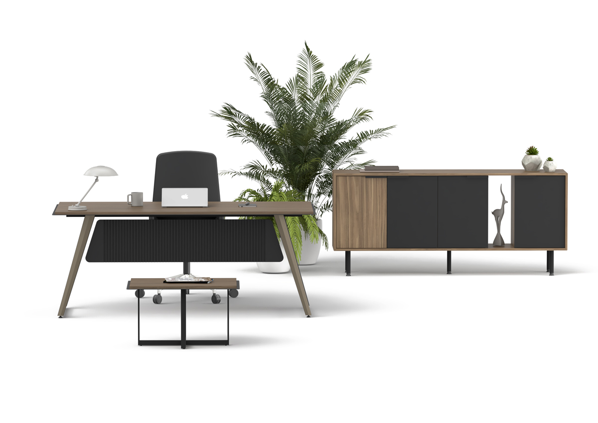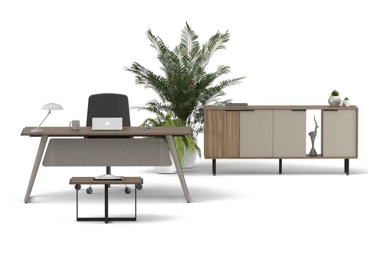 Proud Ara Yönetici Takımı, güçlü tasarım karakteri ve fonksiyonel yapısıyla ara yönetici ofislerinde düzenli ve prestijli bir çalışma alanı oluşturur. Ergonomik masa yapısı ve tamamlayıcı modülleriyle konforlu bir kullanım sunar.