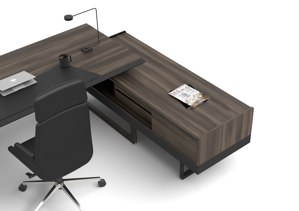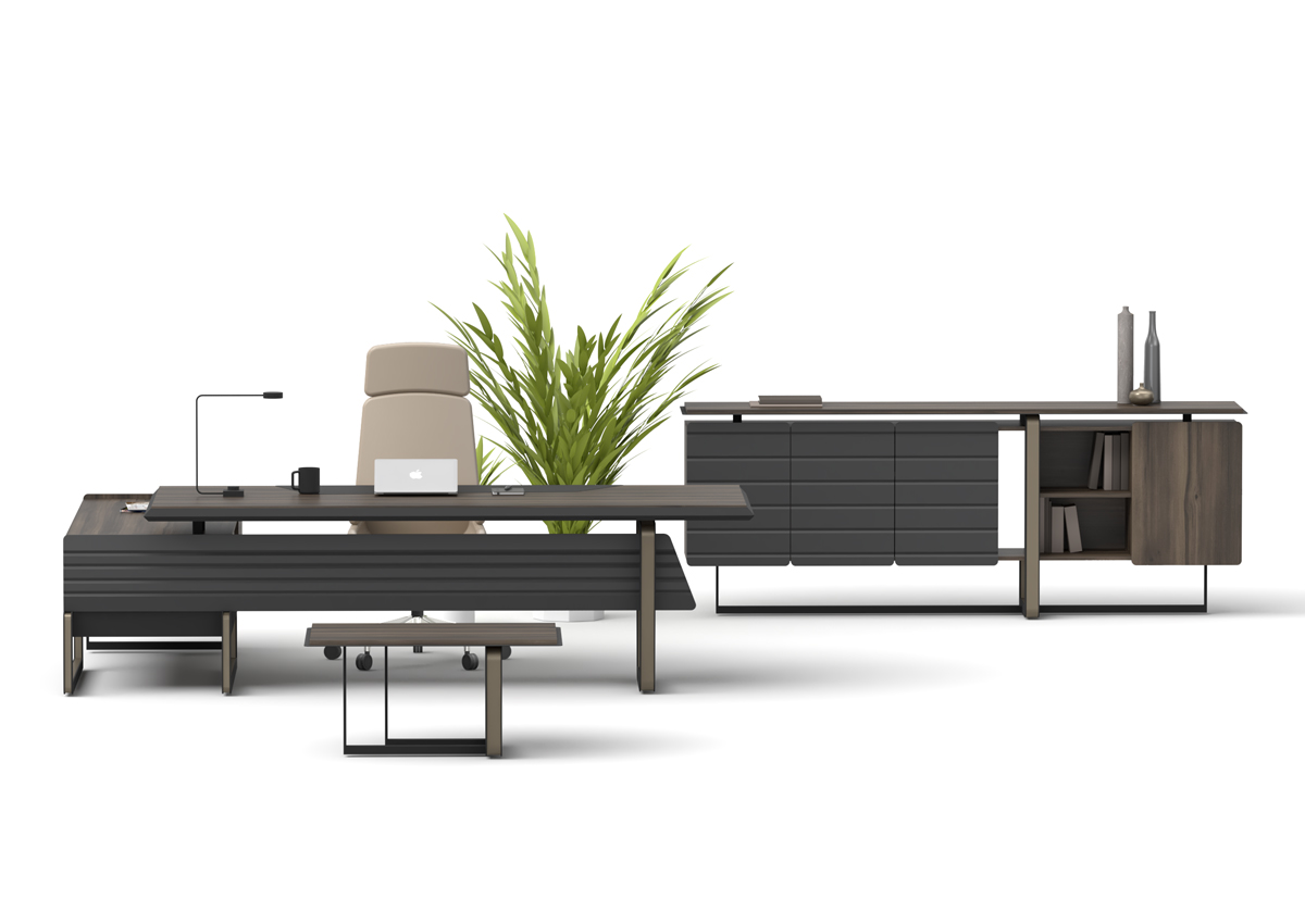 Forge Makam Takımı, güçlü tasarım karakteri ve modern ofis anlayışını yansıtan detaylarıyla yönetici alanlarında dikkat çekici bir atmosfer oluşturur. Geniş ve ergonomik masa yapısı ile tamamlayıcı depolama modülleri sayesinde hem konforlu hem düzenli bir çalışma ortamı sunar. Prestijli makam odaları için tasarlanan Forge Makam Takımı, estetik görünüm ve işlevselliği dengeli şekilde bir araya getirir.