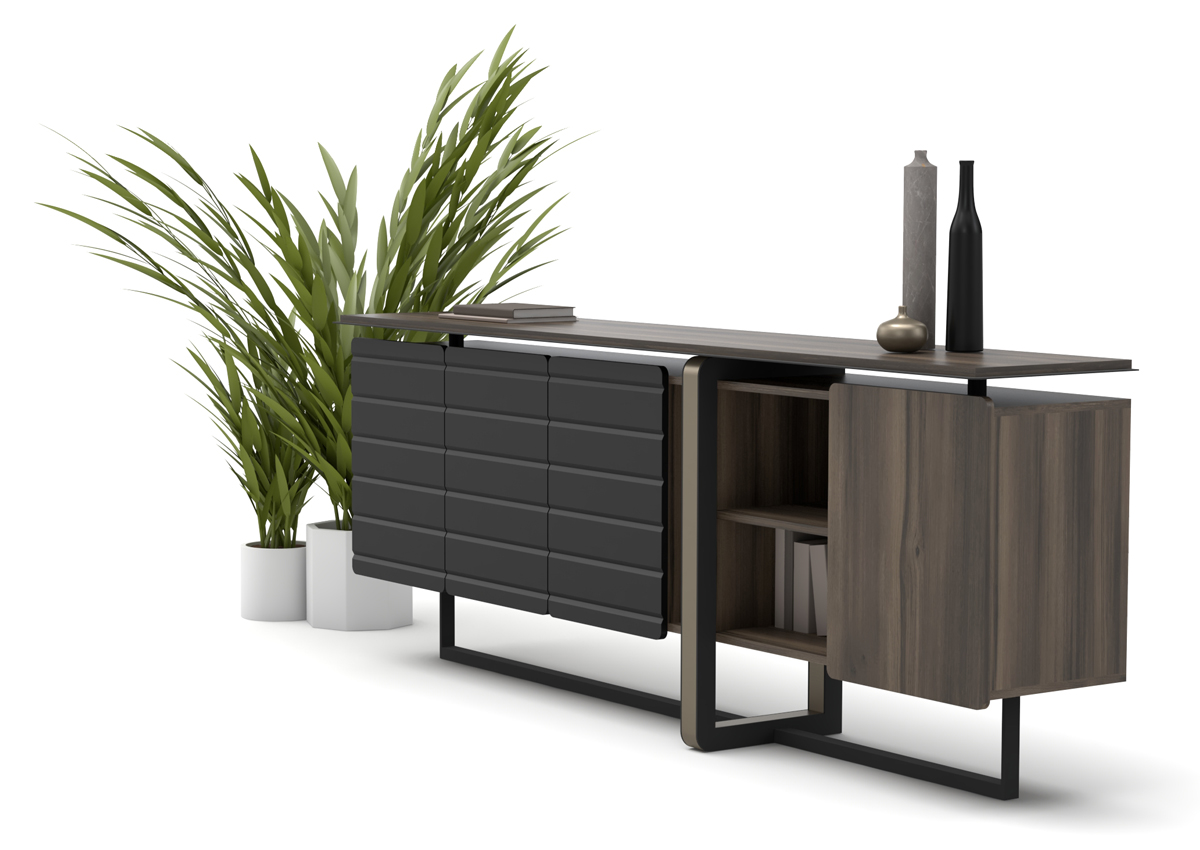 Origami Makam Takımı; keskin geometrik çizgileri, modern siyah tasarımı ve fonksiyonel modülleriyle yönetici ofislerine güçlü bir prestij kazandırır.