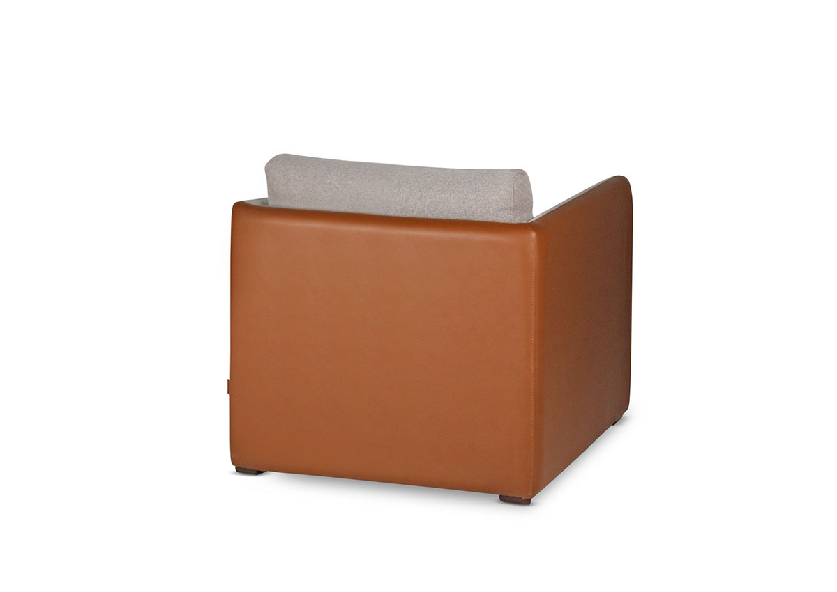 Küp formundaki masif gövdesini tamamen kaplayan deri dış yüzey ve kumaş iç döşemenin birlikte oluşturduğu çift malzeme estetiğiyle Blok Tekli Koltuk, kurumsal mekânlara sade ama güçlü bir tasarım karakteri ve premium konfor sunar.
