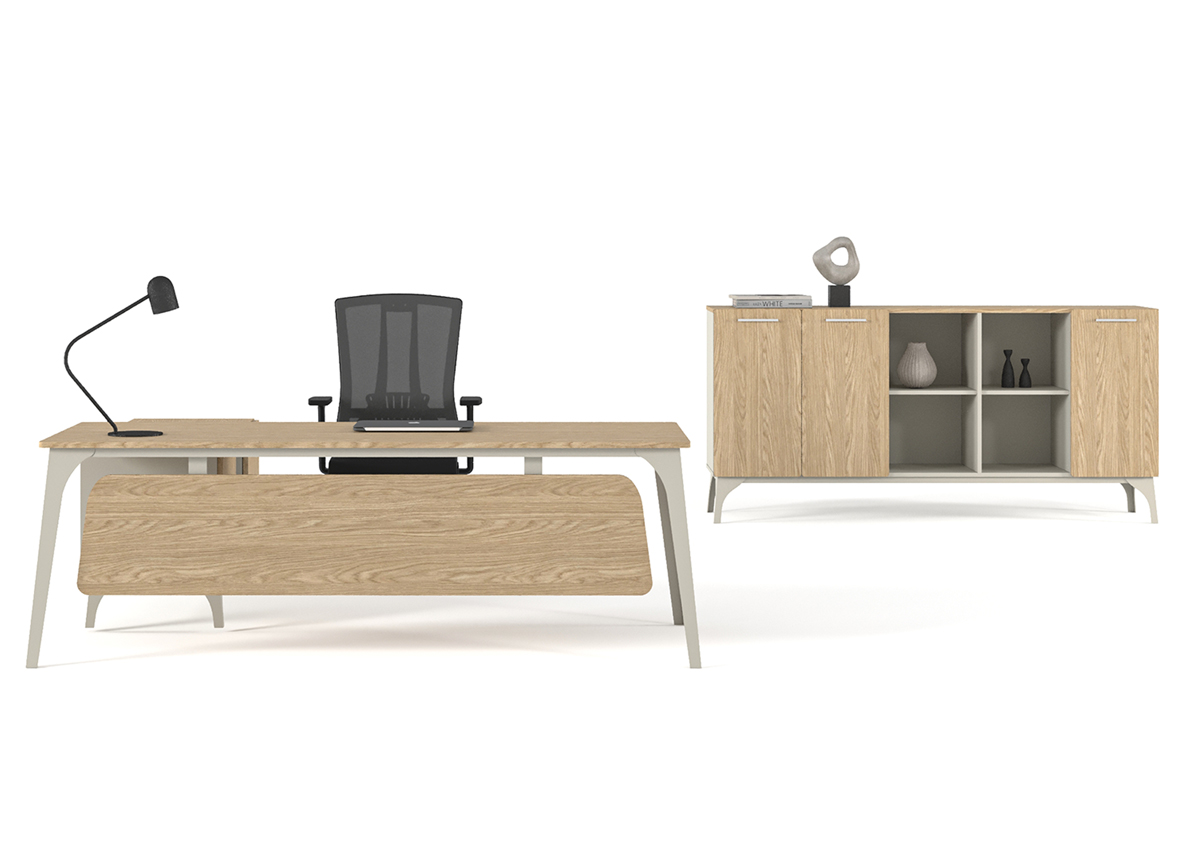 Zoom Ara Yönetici Takımı, modern ofis dinamiklerine uygun tasarımı ve fonksiyonel yapısıyla ara yönetici odalarında düzenli ve profesyonel bir çalışma alanı oluşturur. Ergonomik masa kurgusu sayesinde konforlu ve verimli bir kullanım sunar.