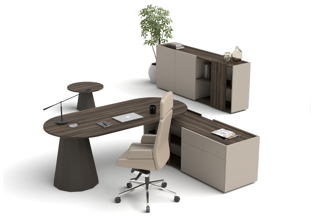 Proud Ara Yönetici Takımı, güçlü tasarım karakteri ve fonksiyonel yapısıyla ara yönetici ofislerinde düzenli ve prestijli bir çalışma alanı oluşturur. Ergonomik masa yapısı ve tamamlayıcı modülleriyle konforlu bir kullanım sunar.