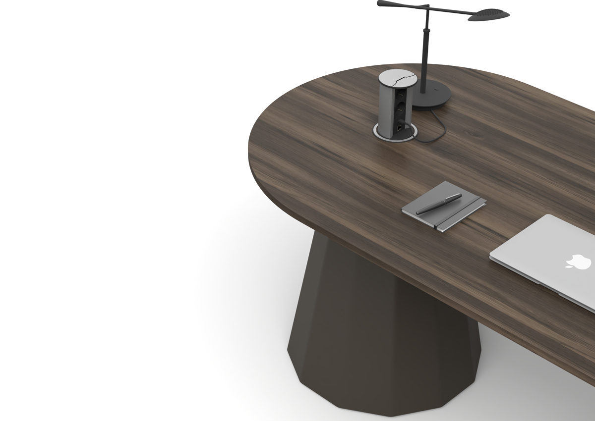 Boomerang Ara Yönetici Takımı, özgün boomerang form masa tasarımıyla ara yönetici ofislerinde hem dinamik hem fonksiyonel bir çalışma alanı oluşturur. Geniş yüzey yapısı ve ergonomik kurgusu sayesinde konforlu ve verimli bir kullanım sunar.