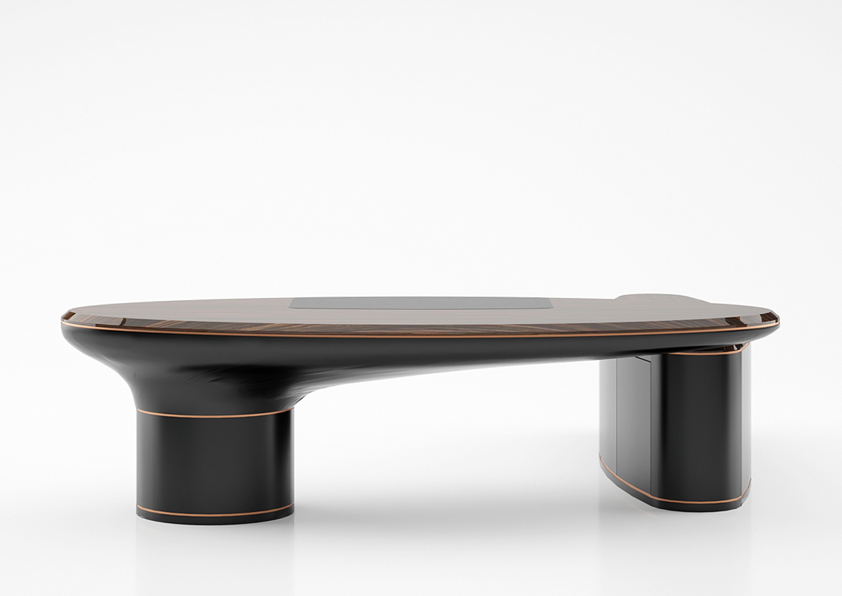Flow Makam Odası; organik formdaki geniş masası, doğal taş dokulu detayları ve modern çizgileriyle yönetici ofislerine prestijli ve güçlü bir atmosfer kazandırır.