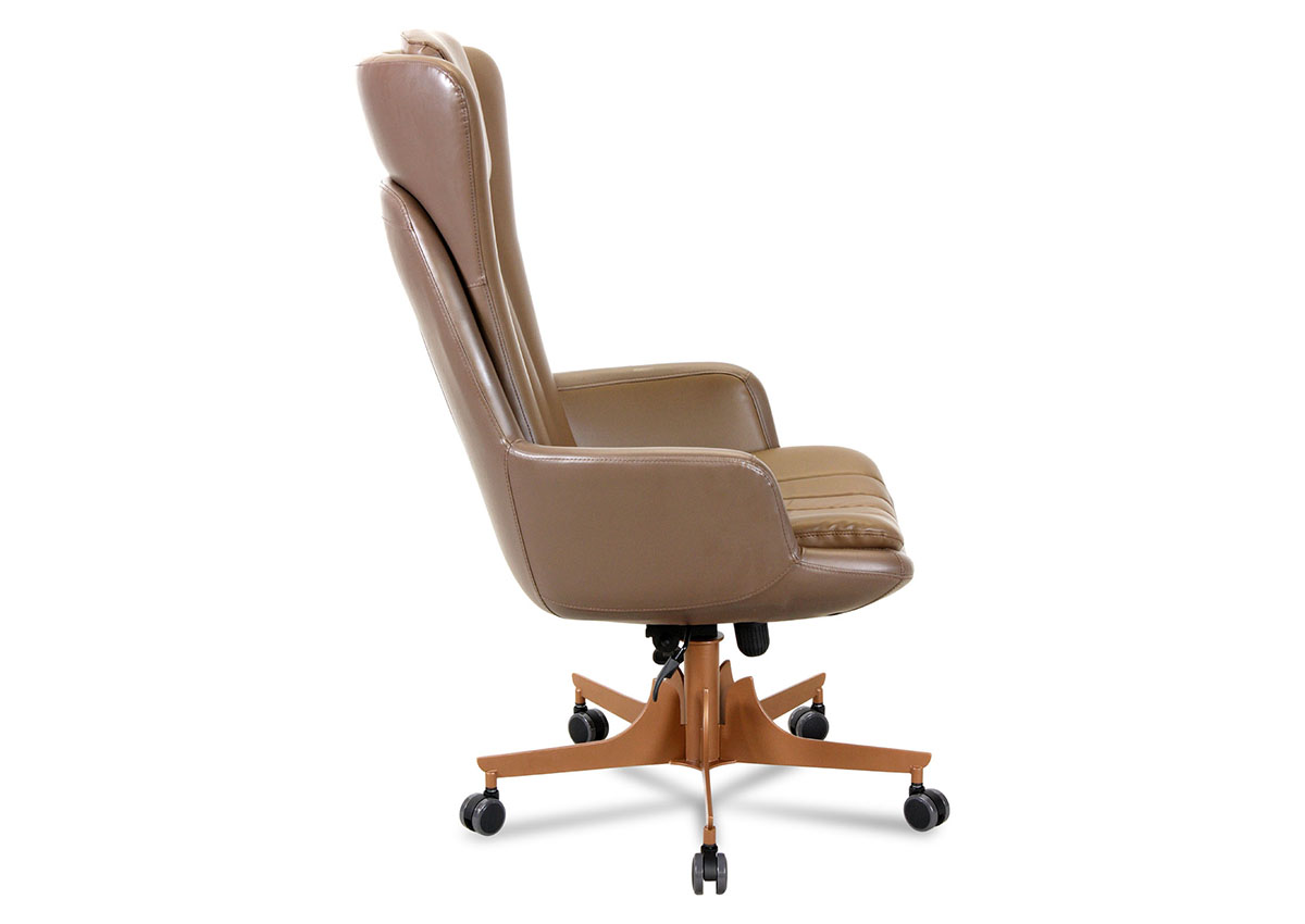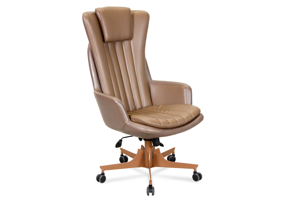 Gold Yönetici Koltuğu, yüksek sırt yapısı, dikey dikiş detayları ve özel tasarım metal ayak formu ile makam odalarına güçlü ve prestijli bir karakter kazandırır.