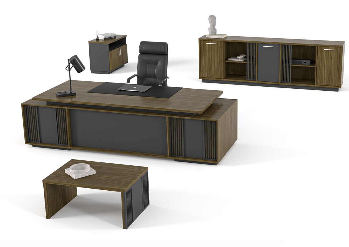 Zenon Makam Takımı, çağdaş tasarım anlayışı ve dikkat çekici detaylarıyla yönetici ofislerinde güçlü bir etki yaratan özel bir makam takımıdır. Geniş masa yüzeyi ve tamamlayıcı depolama üniteleri sayesinde düzenli ve profesyonel bir çalışma alanı oluşturur. Modern ofis konseptlerine uyum sağlayan Zenon Makam Takımı, konfor, şıklık ve verimliliği bir arada sunan ideal bir yönetici ofis mobilyasıdır.