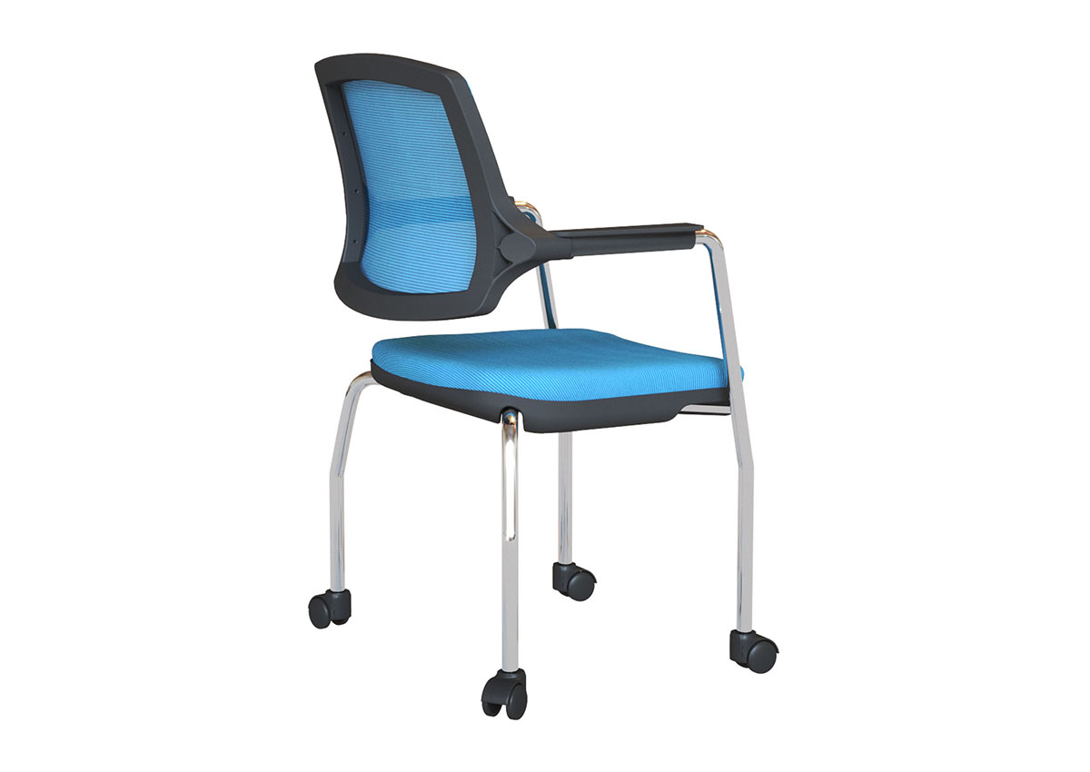 Joker Toplantı Koltuğu, 4 tekerli krom boru ayak yapısı sayesinde kolay hareket imkanı sunar. File sırt tasarımı hava sirkülasyonu sağlayarak uzun toplantılarda konforlu kullanım sağlar.