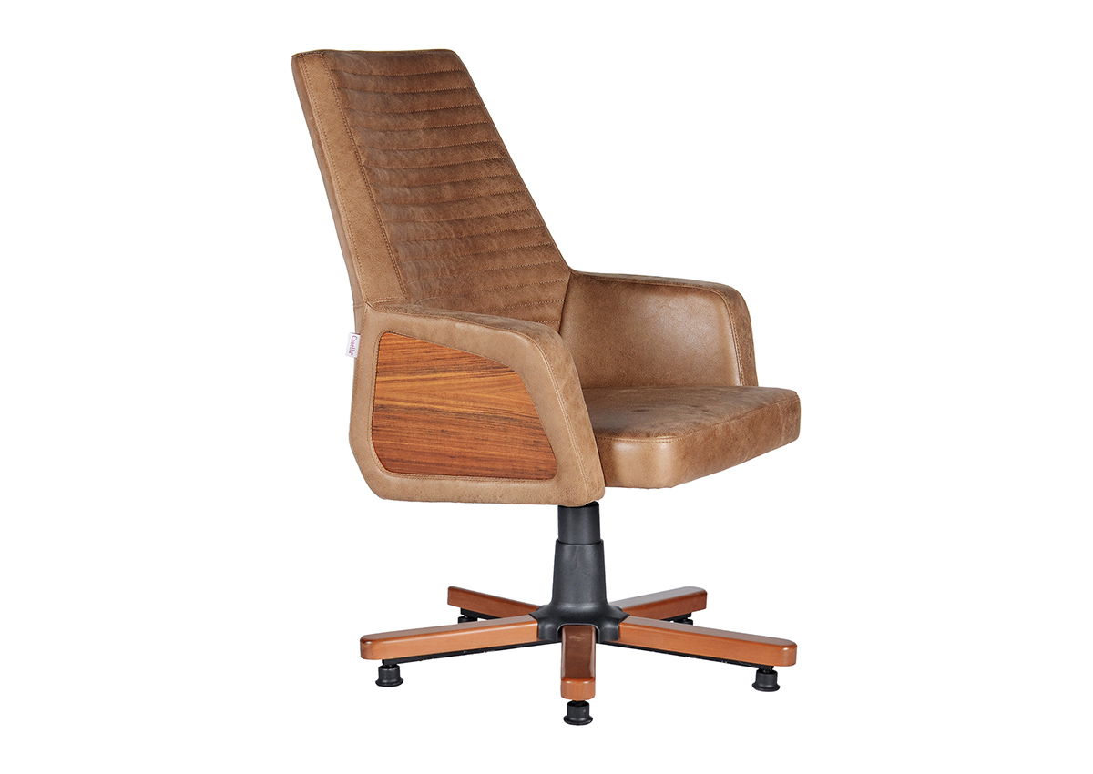 Kol bölümünde yer alan ahşap panel detayları ürüne doğal ve sıcak bir karakter kazandırırken, metal kızak veya sabit ayak seçenekleri ile farklı kullanım alanlarına uyum sağlar. Yönetici odaları, toplantı alanları ve bekleme bölümleri için ideal bir tamamlayıcıdır.