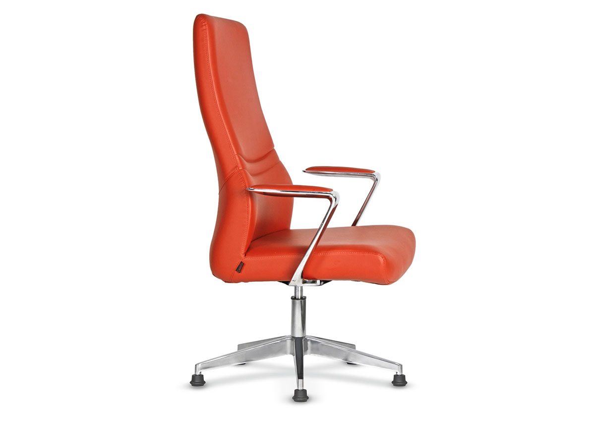 SUNSET Deri Döşemeli Misafir Koltuğu, çizgili sırt tasarımı, şık krom kol detayları ve alüminyum ayak yapısıyla yönetici ofisleri ve toplantı alanları için güçlü bir duruş sunar. Ergonomik formu sayesinde uzun süreli oturumlarda konfor sağlarken, modern tasarımıyla mekâna prestij katar.