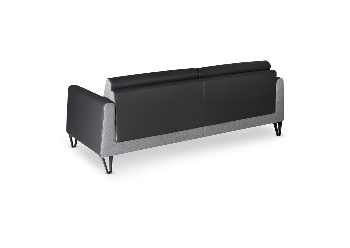 Koyu deri ve açık gri kumaşın geniş kanepe yüzeyinde yarattığı çarpıcı iki tonluk kontrast ve ince kıl metal ayakların zarif duruşuyla Nobel Üçlü Kanepe, kurumsal bekleme alanlarına özgün bir sofistike karakter ve modern lüks katar.