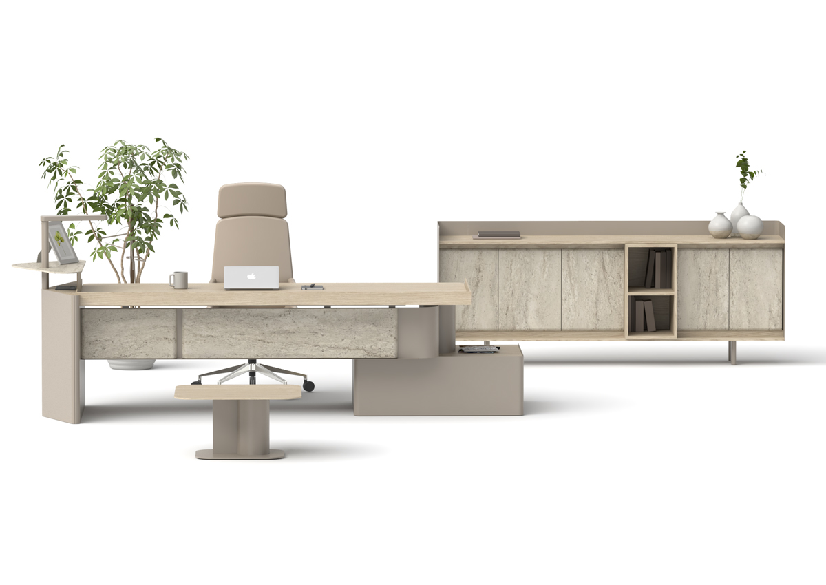 Monolith Makam Takımı; modern taş dokulu tasarımı, zarif detayları ve fonksiyonel yapısıyla prestijli yönetici ofisleri için özel bir çözümdür.