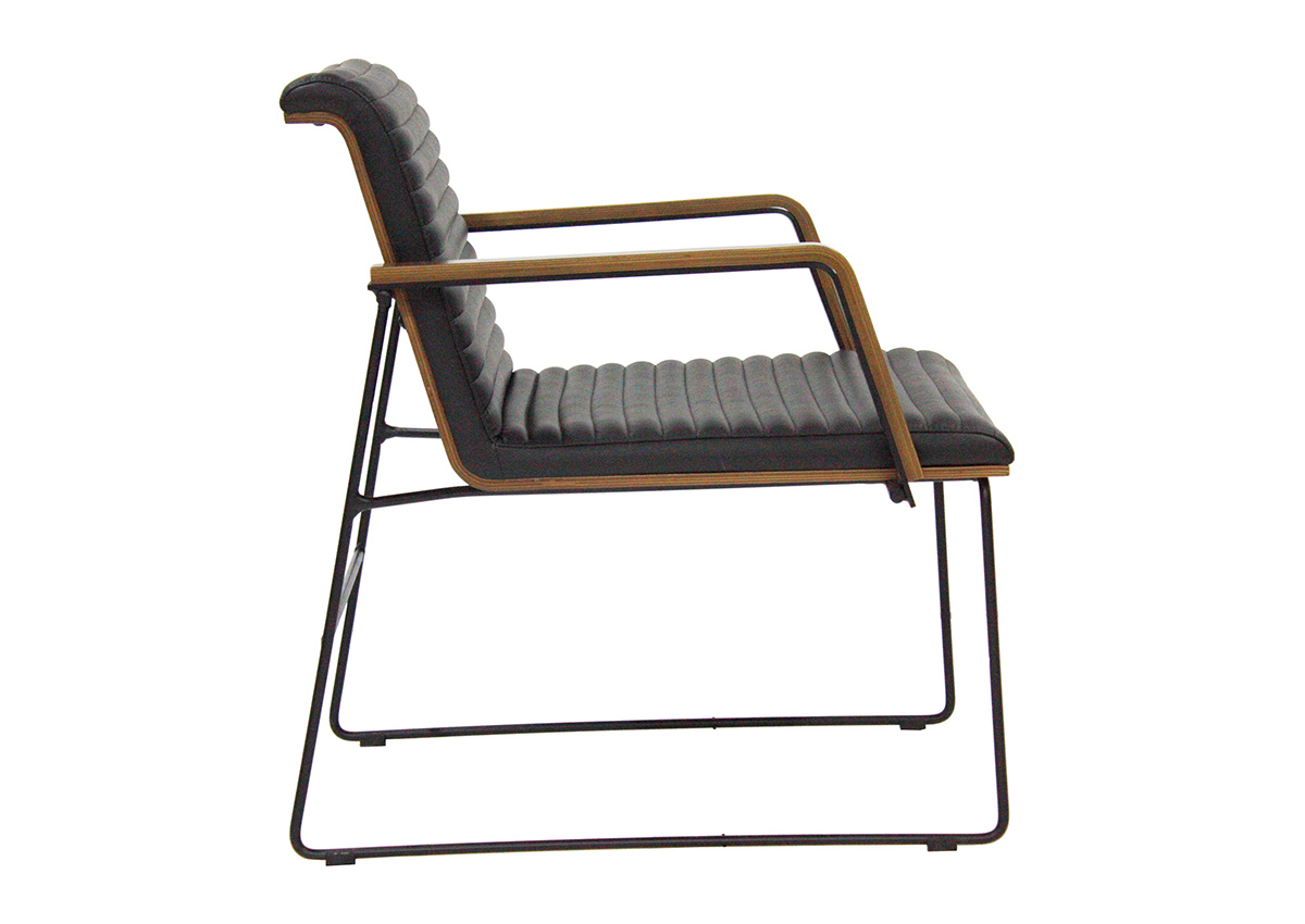 Ceviz kaplama ahşap çerçevesi ve yatay şeritli deri döşemesiyle endüstriyel estetiği premium malzeme kalitesiyle buluşturan Primo Tekli Koltuk, ofis ve bekleme alanlarına özgün bir karakter katar. Mat siyah kızak ayak yapısıyla modern ve sofistike bir lounge çözümü sunar.