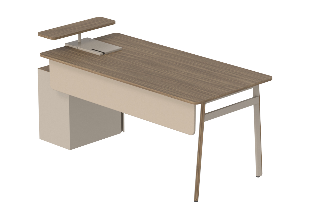 Ear Alt Etajerli Çalışma Masası, modern ve fonksiyonel tasarımıyla hem kurumsal ofislerde hem ev ofislerde düzenli ve verimli bir çalışma alanı oluşturmak için tasarlanmış bir ofis mobilyasıdır.