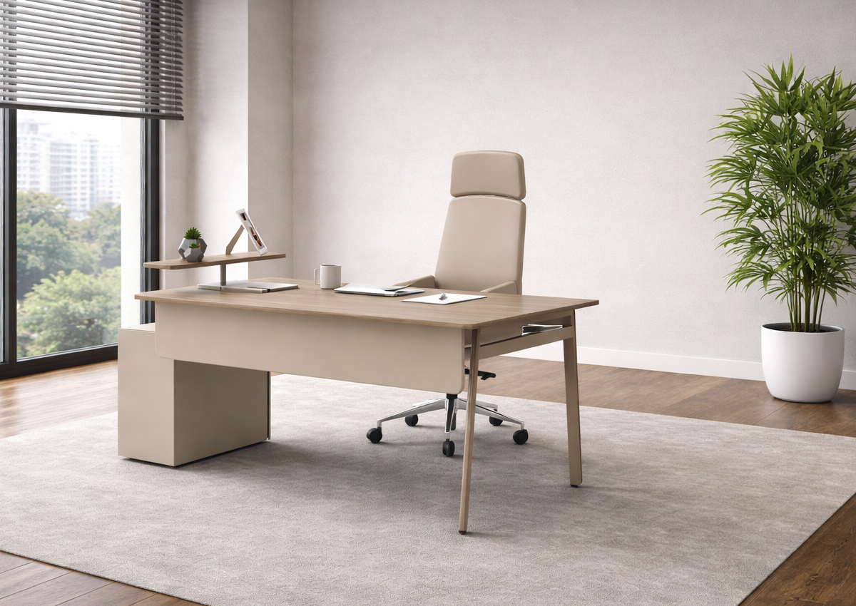 Pros Çalışma Masası, modern ofis tasarımına uyum sağlayan sade ve fonksiyonel yapısıyla verimli çalışma alanları oluşturmak için tasarlanmıştır. Geniş masa yüzeyi, ergonomik ölçüleri ve kullanışlı depolama çözümleri sayesinde hem ev ofis hem kurumsal ofis ortamlarında konforlu bir kullanım sunar. Dayanıklı malzeme yapısı ve zamansız tasarımıyla Pros Çalışma Masası, estetik ve işlevselliği bir arada arayanlar için ideal bir ofis mobilyası çözümüdür.