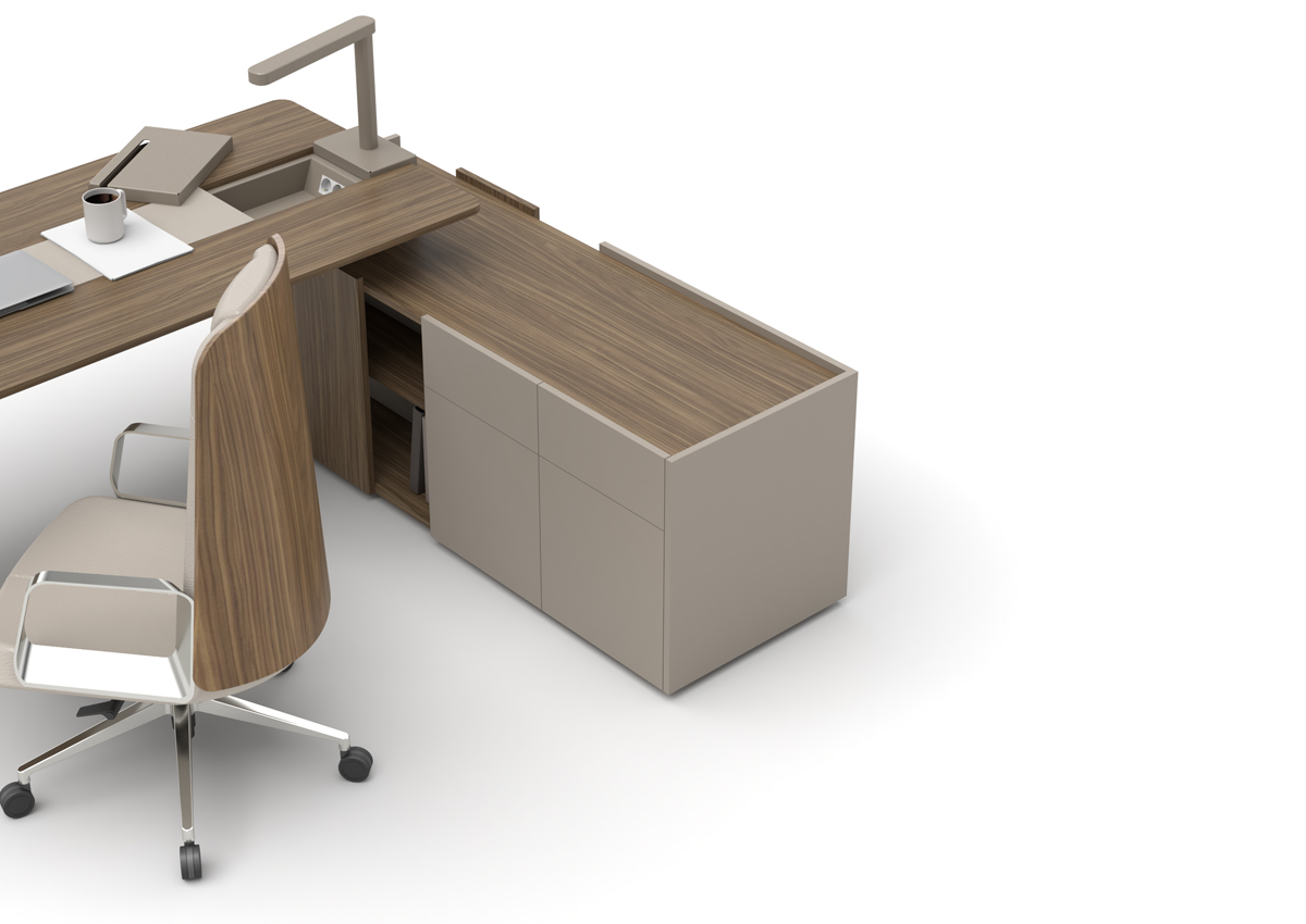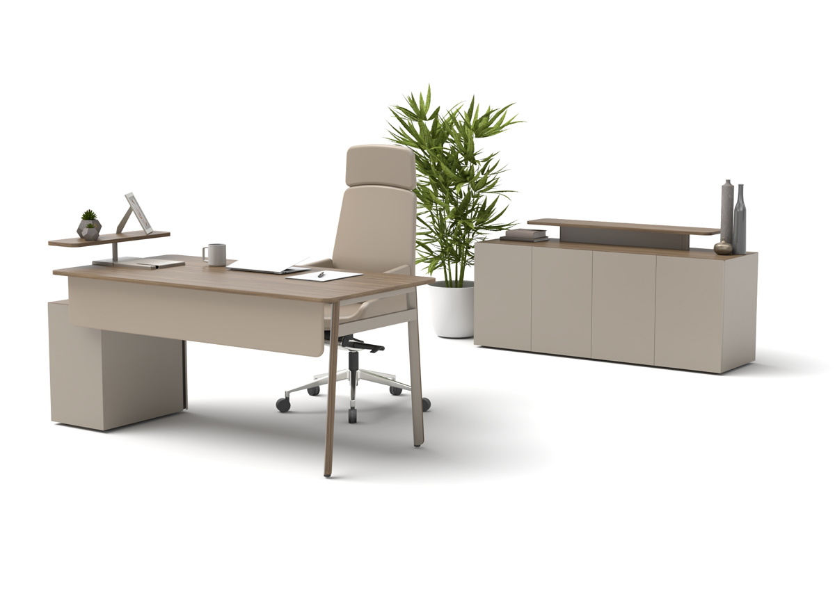 Proud Ara Yönetici Takımı, güçlü tasarım karakteri ve fonksiyonel yapısıyla ara yönetici ofislerinde düzenli ve prestijli bir çalışma alanı oluşturur. Ergonomik masa yapısı ve tamamlayıcı modülleriyle konforlu bir kullanım sunar.