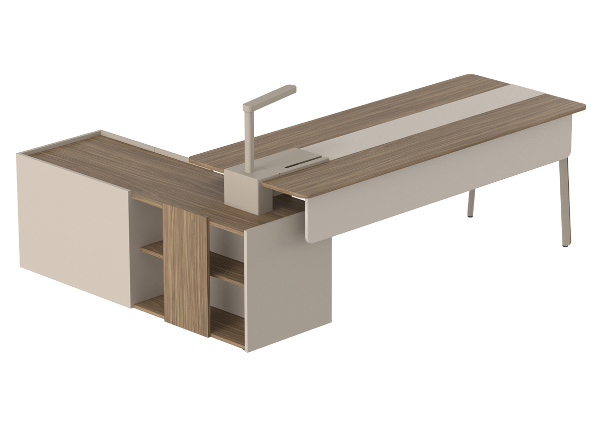 Boomerang Ara Yönetici Takımı, özgün boomerang form masa tasarımıyla ara yönetici ofislerinde hem dinamik hem fonksiyonel bir çalışma alanı oluşturur. Geniş yüzey yapısı ve ergonomik kurgusu sayesinde konforlu ve verimli bir kullanım sunar.