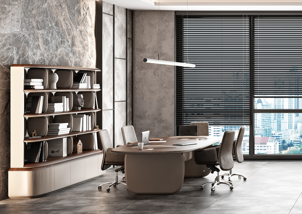 Stone Toplantı Masası, modern tasarımı ve güçlü formu ile toplantı alanlarına prestijli ve etkileyici bir atmosfer kazandırır. Oval hatlara sahip geniş tablası, ekip çalışmalarında konforlu bir kullanım sunarken; zarif ayak yapısı mekâna bütüncül ve dengeli bir görünüm kazandırır.