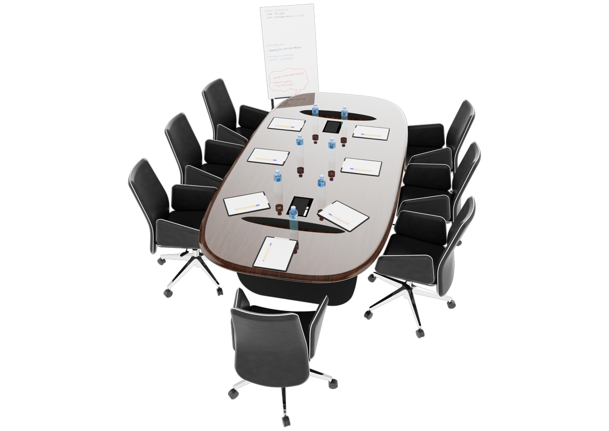 Prime Toplantı Masaları, modern tasarım çizgileri ve geniş masa yapısıyla toplantı alanlarında prestijli ve düzenli bir atmosfer oluşturur. Kurumsal görüşmeler ve ekip toplantıları için konforlu bir kullanım sunar.