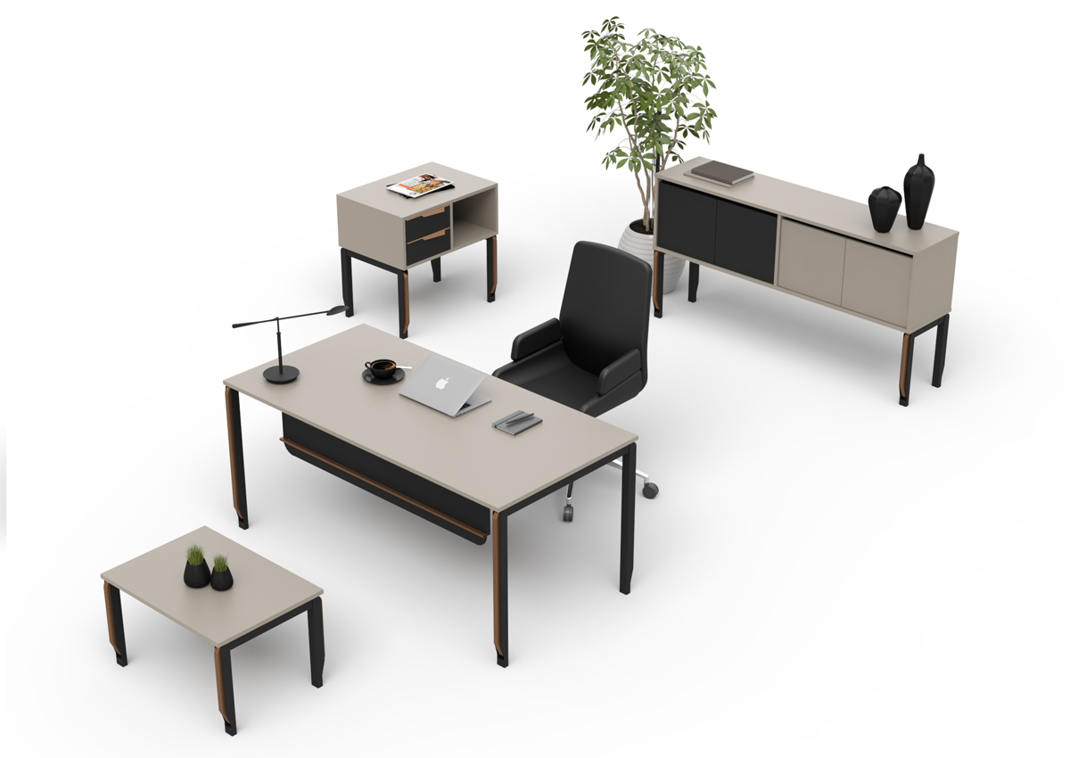 Proud Ara Yönetici Takımı, güçlü tasarım karakteri ve fonksiyonel yapısıyla ara yönetici ofislerinde düzenli ve prestijli bir çalışma alanı oluşturur. Ergonomik masa yapısı ve tamamlayıcı modülleriyle konforlu bir kullanım sunar.