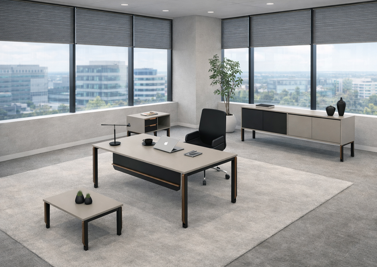 Zoom Ara Yönetici Takımı, ara kademe yöneticilerin günlük iş temposuna uyum sağlayacak şekilde tasarlanmış çağdaş bir ofis takımıdır. Geniş ve dengeli masa yüzeyi, bilgisayar ve evrak kullanımını rahatça desteklerken ergonomik ölçüleri uzun süreli çalışmalarda konfor sağlar. Net ve modern tasarım hatları, ofis ortamına kurumsal bir görünüm kazandırır.