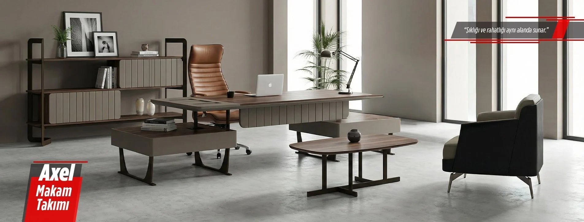 Çalışma masaları, ofis mobilyalarının merkezinde yer alır. Ergonomik tasarımı, doğru oturma pozisyonunu sağlayarak rahat bir çalışma deneyimi sunar. Ofis koltukları, uzun saatler boyunca konforlu oturmayı sağlamak için ergonomik tasarımıyla konforlu kullanım sunar. Dolaplar ve raflar, belgelerin düzenli bir şekilde saklanmasını ve erişilebilir olmasını sağlar. Toplantı masaları, iş görüşmeleri ve işbirliği için önemli bir alan oluştururken, resepsiyon mobilyaları ise misafirlerin hoş geldiğini hissetmelerini sağlar.